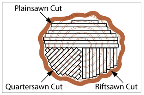 The mill can cut the logs at different angles, to give the wood a different appearance. Wood flooring is either plainsawn, quartersawn, or riftsawn.